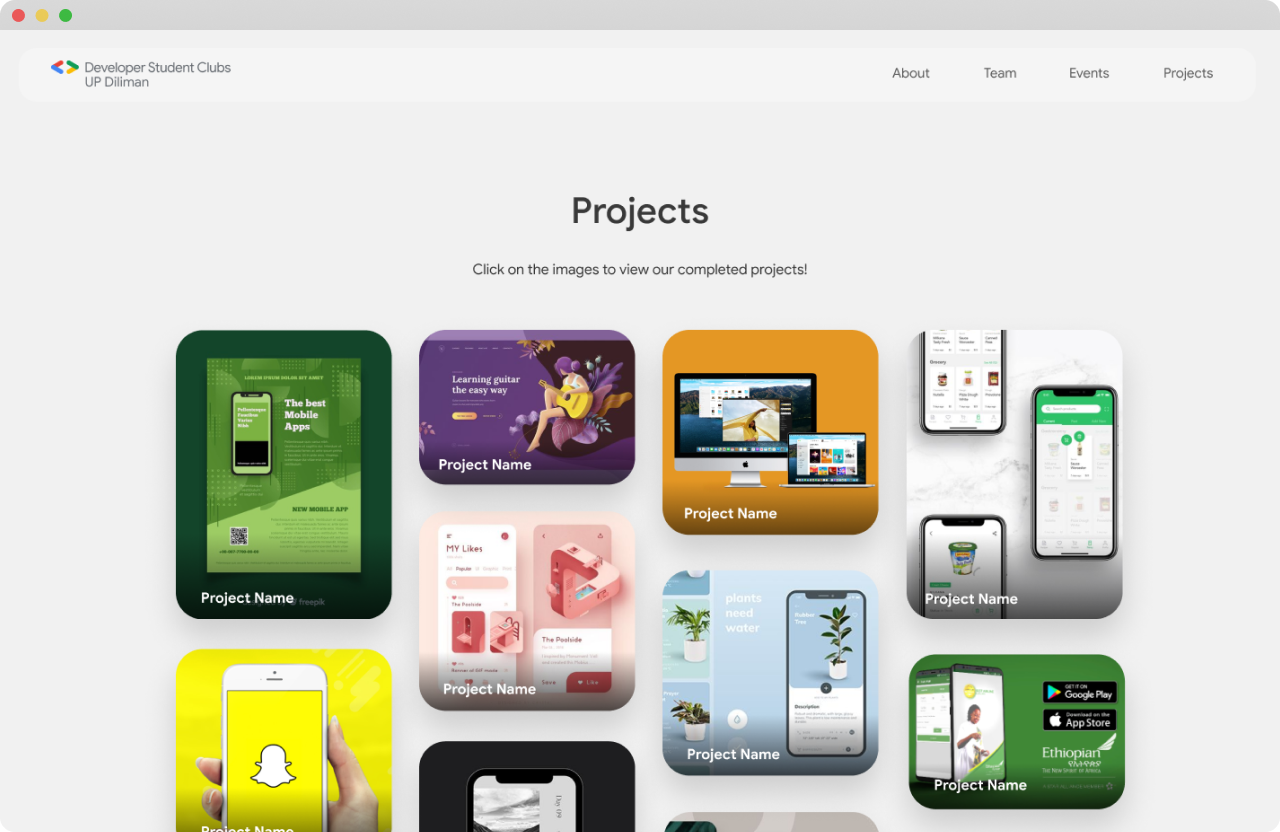 As a freshman in 2020, UP Diliman's Google Developer Student Clubs hosted an internal website design competition for its 300+ community members. I co-designed this layout with the idea to create a clean yet playful design to encapsulate Google's branding. After a couple of revisions, the output was selected to be the official website design to represent the organization.